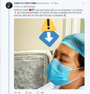 Mes fotove është njëra ku tregohet një punonjëse e Institutit të Virologjisë së Uhanit, që media shtetërore kineze e quan “bankën më të madhe në Azi të ruajtjes së viruseve” teksa hap derën e një frigoriferi. Përdoruesit e internetit kanë vënë re se pjesa plastike e izolimit të derës frigoriferike është defektoze.