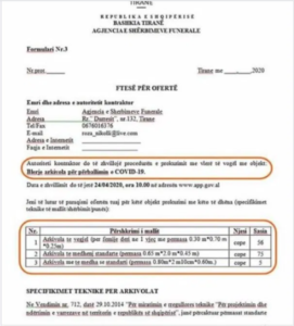 Bashkia e Tiranës po zhvillon një tender ku kërkohet një ofertë për mbi 100 arkivole të cilët do të përdoren pë rtë varrosur viktimatge Covid 19.