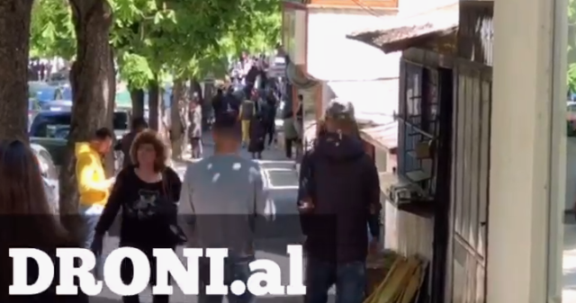 Në pamjet dhe nga burimet për DRONI.al, qytetaret shihen pa maska, pa doreza, duke mos respektuar distancën mes njëri-tjetrit dhe për më tepër nuk jane duke ndjekur keshillen per te mos u shoqeruar me te tjere përkrahë, duke bere grumbuj njerezish ne trotuare dhe jo vetem.