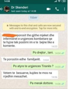 Drejtori i Urgjencës Kombëtare, Skënder Brataj u kërkon mjekëve ti bëjnë sa më shumë like. Permes nje mesazhi kofident me miqte e tij ai kerkon qe edhe familjaret e mjekeve dhe infermiereve te bejne like.
