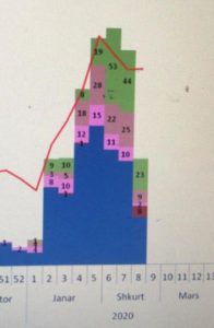 Grafiku I publikuar prej Osmënaj lë të dyshohet fort se të sëmurët me Covid 19 në Shqipëri ishin të bollshëm në vend në dy muajt e parë të vitit. Ata thonë se vetëm analizat seriologjike mund të verifikojnë një gjë të tillë, dhe se këto analiza duhet të bëhen nga institucionet shëndetësore.