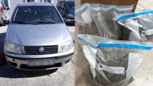 Gjatë kontrollit të ushtruar në automjetet e sekuestruara “Toyota Yaris” dhe “Fiat Punto”, Policia ka gjetur dhe sekuestruar gjithashtu 24.5 kg lëndë narkotike të llojit cannabis sativa, 2600 euro që dyshohen se mund të jenë përfituar nga ky aktivitet kriminal, si dhe 3 aparate celular.