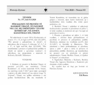 DOKUMENTI/ Tabaku: Edi Rama me një VKM kriminale i kalon truallin e Teatrit Kombëtar, Veliajt
