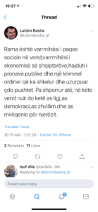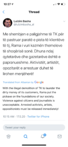 Kreu i PD, Lulzim Basha ka bere dy postime ne twitterpermes te cilave ka denuar genocidin kulturor te bashkise se Tiranes.