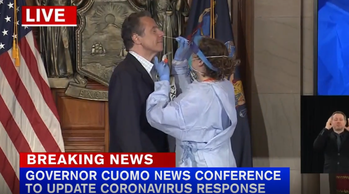 Guvernatori i Nju Norkut Andrew Cuomo shpjegoi të Dielën se si shteti ka zgjeruar testimet me shpejtësi, dhe madje u testua vetë gjatë konferencës së tij të përditshme për shtyp ndaj COVID-19.