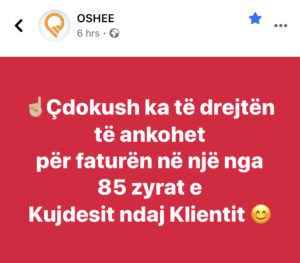 “Kushdo mund te ankohet per faturen ne nje nga 85 zyrat e kujdesit ndaj klientit”, lajmeron OSHEE.