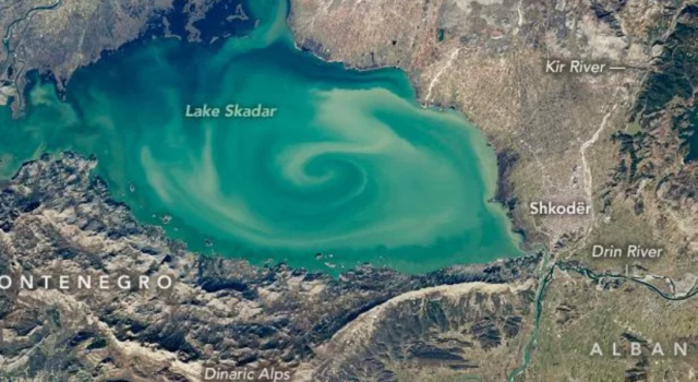 Një tornado në mes të një liqeni. Ky fenomen i mrekullueshëm i publikuar nga NASA nga hapësira nuk është gjë tjetër veçse një efekt optik i krijuar nga sedimentet që formojnë Skadarin, liqenin e Skadariit (Sshkodres) në kufirin midis Malit të Zi dhe Shqipërisë dhe ky është liqeni më i madh në gadishullin Ballkanik.