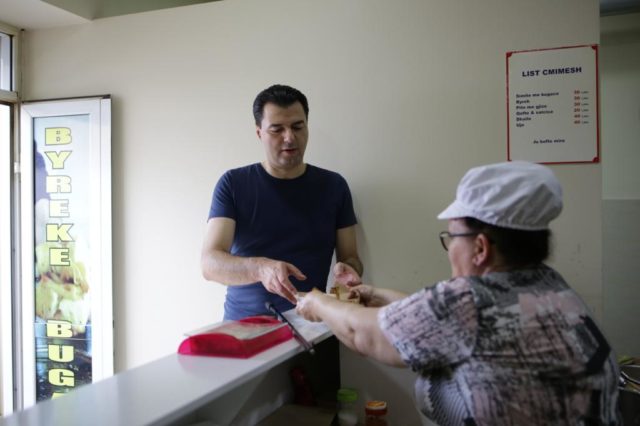 “Është specialiteti i Elbasanit. Është kroasanti i Shqipërisë”, – tha kryetari Basha i cili ka kujtuar me te zonjen e dyqanit dhe kohet kur punonte ne Kosove dhe ndalonte shpesh te blinte bugaçe ne Elbasan.
