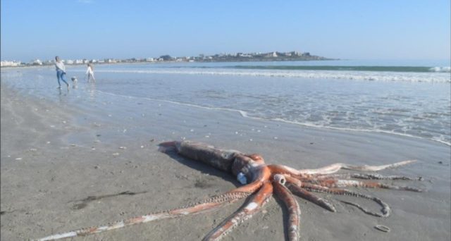 Një kallamar gjigand ka shokuar pushuesit në plazhin e Britannia Bay në Afrikën e Jugut për shkak të dimensioneve të tij të mëdha.