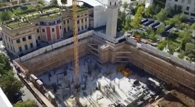 Objekti i ri ka rrethuar në dy anë ndërtesën dy shekullore ndersa themelet jane kopsitur me trate druri per ti mbajtuar pa rene, sic shihet ne fotot e transmetuara nga oranews.