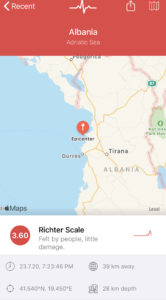 Trrmeti eshte ndjere qarte ne zone nderkohe qe epiqendren e kishte 28 km thellsi dhe 36 km larg nga Tirana. /DRONI.al/