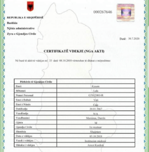 Këtu në foto keni certifikatën e çregjistrimit të të ndjerit Kastriot Lala që në vitin 2018.