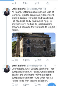 Ambasadori i Gjermanisë në Greqi, Ernst Reichel, postoi në rrjetet e tij sociale nje koment për Ali Pashë Tepelenën.