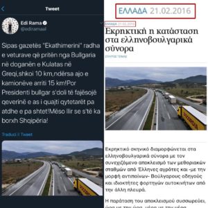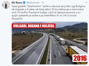 Ne vijim Kashahu komentoi edhe fotot e bllokimit te kufirit bullgaro grek.