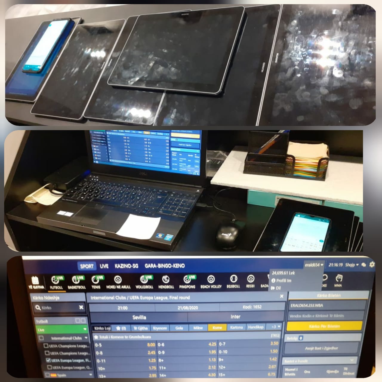 Si rezultat i kontrolleve të ushtruara, në lagjen nr. 12, në lokalin e shtetasit L. P., 29 vjeç, banues në Lushnjë, policia gjetën e sekuestruan në cilësinë e provës materiale 1 laptop dhe 6 tableta të cilat dyshohet se shërbenin për vënien e lotarive sportive.