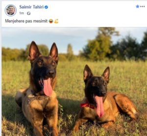 Ish-ministri në faqen e tij në Facebook ka postuar një foto ku janë dy qen të trajnuar, ndërsa postimin e shoqëron me mbishkrimin “Menjëherë pas mësimit”. Cfare ka pasur ne mend ish ministri? Betejen elektorale qe sapo ka nisur? Mesazhet kercenuese Rama Meta per bjeri tjetrin? Apo dikush qe po rivalizon ne heshtje brenda PS? /DRONI.al/