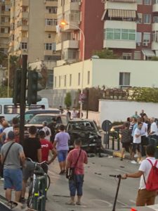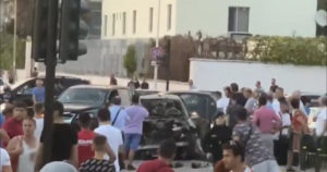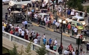 Shperthimi ka dëmtuar thuajse të gjithë makinën. Nuk dihet ende se ne cfare rrethanash ka ndodhur shperthimi por ne ate moment ka apsur shume makina dhe njerez ne ecje.