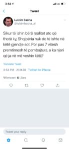 Kreu i PD, Lulzim Basha ka reaguar në Twitter sot ne lidhje me premtimet e Rames sidomos ato te paketes financiare te biznesit te vogel.