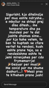 Ajo ndau një deklaratë me ndjekësit e saj në Instagram duke iu treguar se është e mbyllur në shtëpi me temperaturë dhe pa mundësi për të dalë nga dhoma e saj.