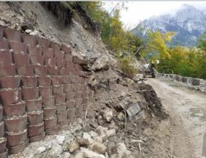1- Përzgjedhja e materialeve tekstile si mure mbajtëse. Këto materiale me kosto të ulët, sipas mendjeve sa të paafta aq edhe makute të rilindjes duhet të sigurojnë mbrojtje nga rëniet e mundshme të gurëve, apo shëmbjet në një reliev alpin, ekstremisht të pjerrët. Që janë zgjedhja e gabuar e madje edhe e rrezikshme, kjo duket sesi janë shqyer, ende pa përfunduar rruga!