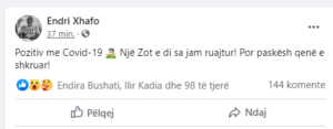 “Pozitiv me Covid-19. Një Zot e di sa jam ruajtur! Por paskësh qenë e shkruar”, ka shkruar Xhafo.