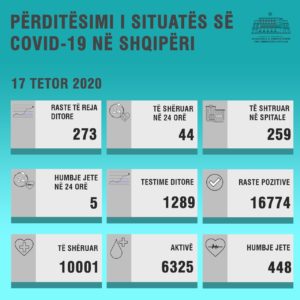 Nderkaq jane 273 raste te reja te infektimeve ne te gjithe vendin nderkohe qe jane sheruar vetem 44 paciente.