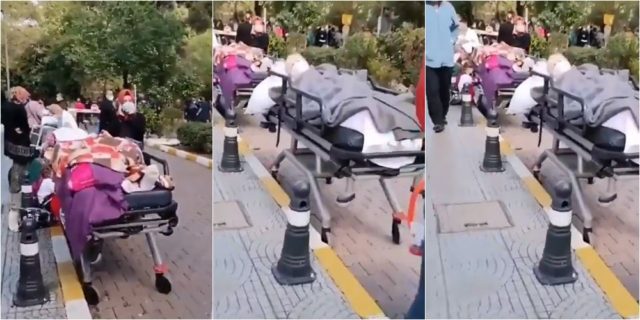 Në një video të publikuar në këtë platformë duken pacientët jashtë një spitali në Izmir. Shtretërit janë vendosur njëri pas tjetrit, ndërsa pacientët kanë të afërm e mjekë pranë tyre.