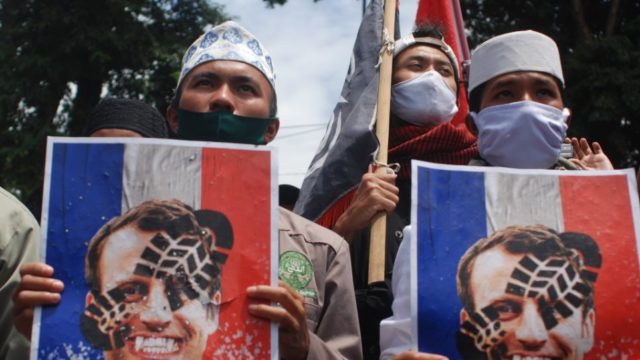 Dhjetëra mijëra njerëz kanë protestuar kundër Francës në ditët e fundit në shumë vende arabe dhe myslimane. Disa dogjën flamuj francezë dhe  portrete të presidentit francez, ndërsa janë bërë propozime për bojkot të produkteve franceze.
