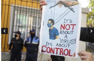 Studentët hoqën maskat dhe i vendosën në muret e ministrisë së arsimit me thirrjen ju jeni virusi , ndërsa deklaruan se do të bojkotojnë mësimin online dhe do të vijojnë protestën edhe nesër.