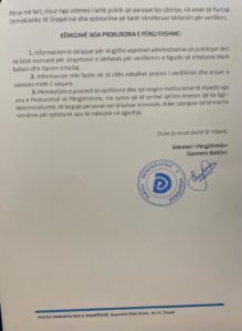 KËRKOJMË NGA PROKURORIA E PËRGJITHSHME: