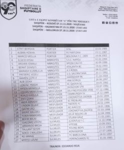 Trajneri Edy Reja ka shpallur listën e lojtarëve që do të ketë në dispozicion ne ndeshjet qe Shqipëria luan më 11, 15 dhe 18 nëntor kundër Kosovës, Kazakistanit dhe Bjellorusisë.