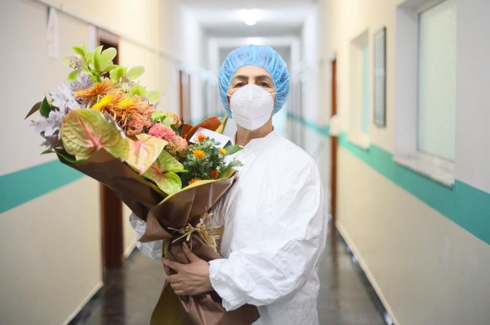 Përmes një postimi në “Facebook”, Manastirliu ka treguar se i ka dhuruar një buqetë të madhe me lule brenda ambienteve të spitalit.