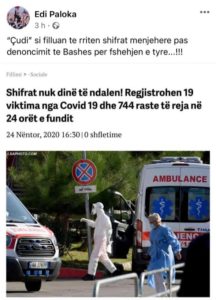 Paloka e konsideron të çuditshëm faktin që shifrat u rritën menjëherë pas denoncimit që bëri Basha për fshehjen e shifrave reale të viktimave. Rritja e viktimave ka nisur qe prej dy ditesh me gati dyfishin e atyre qe ishin raportuar me heret.