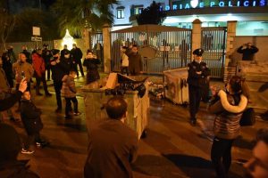 Policet kanë shoqëruar disa persona, pjesa më e madhe të rinj nderkohe qe familjaret kane nisur te protestojne per lirimin e tyre.