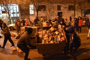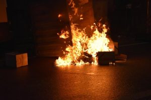 Protesta u tensionua, pasi grupi i qytetarëve kanë hedhur koshat e plehrave në rrugë duke u vendosur më pas zjarrin. Gjithashtu protestuesit kanë hedhur fishekzjarrë në drejtim të policisë.