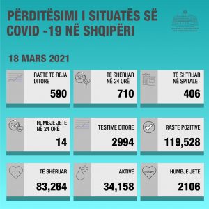 Situata e COVID19 në 24 orët e fundit është si vijon: Janë kryer 2994 testime, nga të cilat kanë rezultuar pozitivë 590 qytetarë.