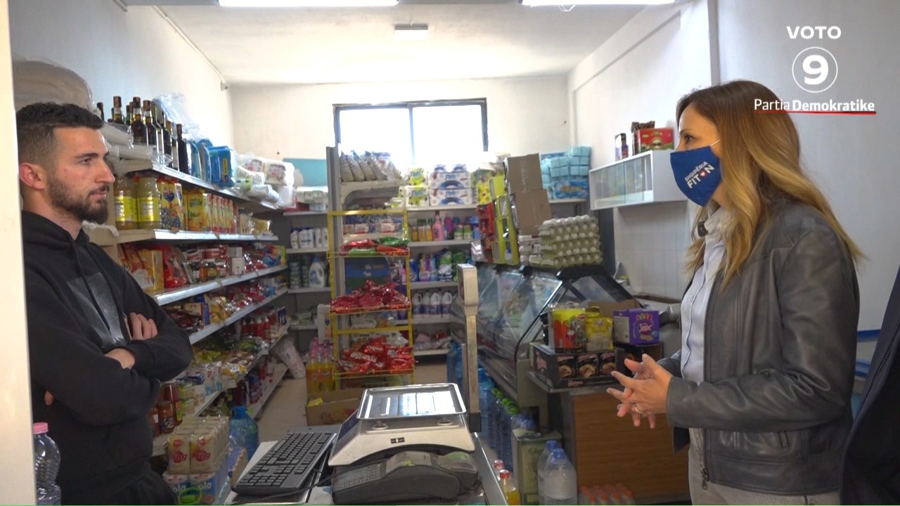 -Ky është biznesi yti? Ku punon? Si po të shkon? Dobët? Ne kemi një plan pune mbështetje për biznesin e vogël, do të eleminojmë fiskalizimin dhe më e rëndësishmja, është që të nxisim ekonominë! Sot ekonomia është në ngerç! Ti e sheh që nuk ka konsum dhe ti e sheh që nuk blejnë produkte ushqimore. Ti je në shkollë, ke studiuar?
