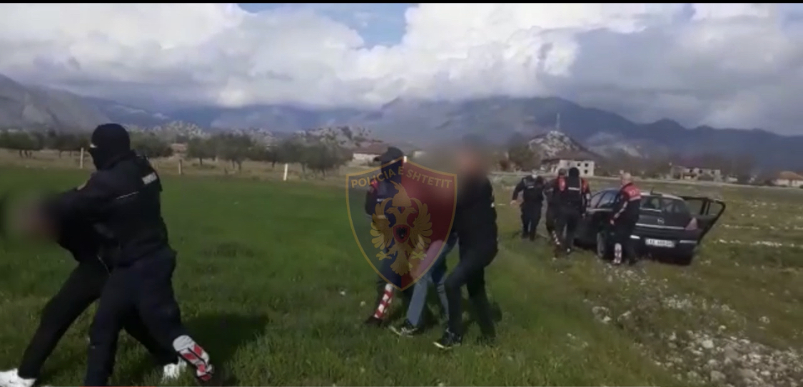 “Gjatë ndërhyrjes shërbimet e Policisë kanë vënë në pranga shtetasit e lartpërmendur, si dhe kanë sekuestruar në cilësinë e provës materiale: 20 kg lëndë e dyshuar narkotike cannabis sativa, 1 armë zjarri tip pistoletë, 2 automjete dhe 3 aparate celular.