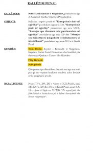 Prej më shumë se një muaji, Partia Demokratike ka dorëzuar në SPAK kallëzimin penal për veprën penale të “Korrupsionit aktiv në zgjedhje”, “Korrupsionit pasiv në zgjedhje”, “Kanosjes apo dhunimit ndaj pjesëmarrësve në zgjedhje” dhe “Marrjes ose përdorimit të paligjshëm të dokumenteve të identifikimit” për Tom Doshin, Filip Gjeloshin dhe Pal Gjeloshin dhe çdo person tjetër të paidentifikuar nga ana e jonë.