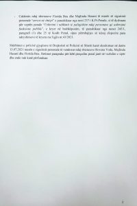 Nga veprimet hetimore të kryera për këtë procedim penal në bashkëpunim me policinë gjyqësore të Drejtorisë së Policisë së Shtetit, janë siguruar dhe janë mbledhur prova konkrete, nga të cilat janë krijuar dyshime të arsyeshme se shtetasja Rovena Voda, në cilësinë e zëvendës ministres në Ministrinë e Brendshme ka pranuar dhe ka marrë përfitime monetare dhe përfitime materiale të padrejta nga shtetaset Majlinda Hasani dhe Florida Beu.