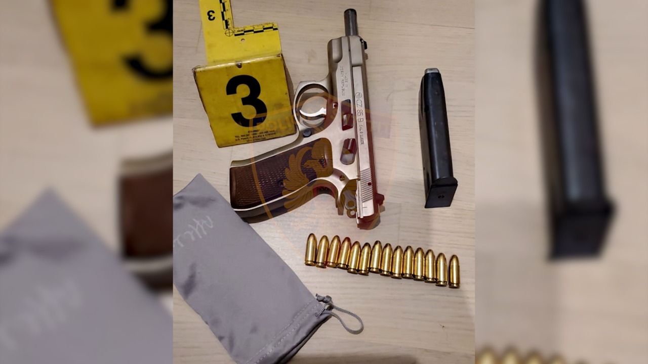 Gjatë kontrollit të apartamentit, shërbimet e Policisë gjetën dhe sekuestruan armë zjarri pistoletë, leje drejtimi dhe dokumente të tjera të lëshuara nga një shtet tjetër.