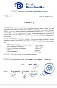 Në bazë të këtij referendumi është ratifikuar vendimi numër 6 i Kuvendit Kombëtar për shkarkimin e Lulzim Bashës, thuhet në vendimin e referendumit firmosur nga komisioni elektoral i përcaktuar nga kuvendi kombëtar i PD më 11 janar. a.b
