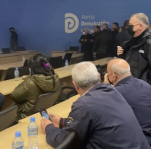 Dalin pamjet nga salla e mbledhjeve të këshillit kombëtar ndërkohë që para PD kishte nisur protesta. Rreth 40 persona qëndrojnë të tërhequr në fundin e sallës, siç duket nga pamjet, ndërsa forcat ndëshkuese që droj ë afër dritareve të katit të dytë.