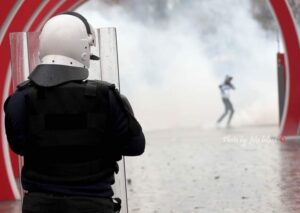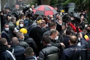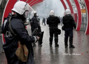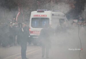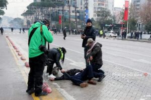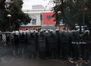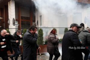 Më poshtë janë disa nga fotot që fotografi njohur Feliks Bilani shkrepi sot në protestën te selia e PD derisa gazi nga selia e Bashës dhe dhuna e polisë e bënë për spital.