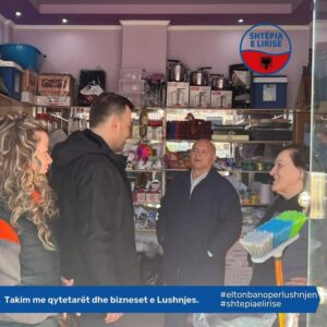 Kandidati demokrat i Shtëpisë së Lirisë, Elton Bano po kryen takime me qytetarët dhe bizneset e Lushnjes.