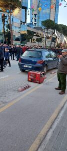 Protestuesit kërkuan dorëheqjen e ministres se Transportit Belinda Balluku q kërkoi që qytetarët të ecin në këmbë. a.b