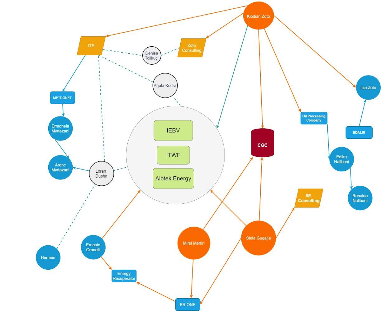 “Skema, që ju e shihni këtu, është ajo e lidhjes së tre personave që kanë krijuar mbi 40 kompani (por që ne nuk I kemi paraqitur të gjitha). Të gjithë të punësuarit në kompanitë e inceneratorëve janë njerëz të lidhur me njëri tjetrin përmes lidhjeve miqësore dhe historike mes tyre. Mirel Mërtiri njihet me Zoton, të dy udhëtojnë me Ahmetaj dhe Gjiknurin, më pas Gugallja hap një kompani që gjithë punimet ia jep po Zotos. Më pas krijojnë kompani auditimi me njerëz që janë këshilltarë në Ministrinë e Financave dhe Ekonomisë, e më tej administratorët janë po ashtu qytetarë që kanë punuar në kompanitë e zv.kryeministrit aktual, apo në kompanitë e Mërtirit dhe Zotos.” U shpreh Tabaku ndërsa prezantonte skemën e publikuar.