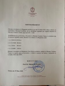 Dhoma e Avokatisë në Tiranë do të zhvillojë zgkedhjet për kryetarin e ri.