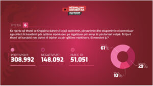 Rama publikoi sot rezultatet e këshillimit publik, kryer dhe procesuar po nga qeveria ku 61 % e të pyeturve janë dakprd me legalizimin dhe 29% janë kundër.