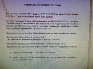 Ben tender Albcontroli me fond limit 61.666666 milione leke. Ne gare ka vetem nje kompani R&T me oferte 61.666000 milione leke. Kjo shpallet fituese.
